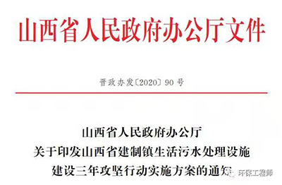 V類水標(biāo)準(zhǔn)!山西提高新建鄉(xiāng)鎮(zhèn)污水處理部分排放指標(biāo)!